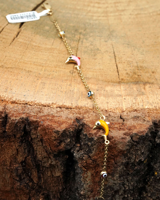 14 Ayar Altın Mineli Yunuslu Nazar Bocuklu Bebek Çocuk Künyesi
