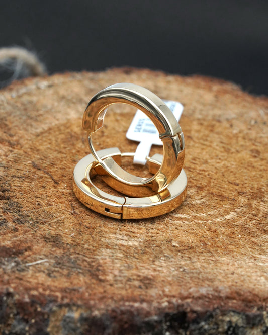14 Ayar Altın Düz Çift Halka Küpe 2.1cm Gizli Kilitli
