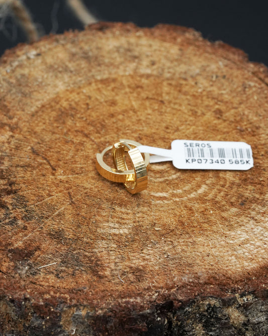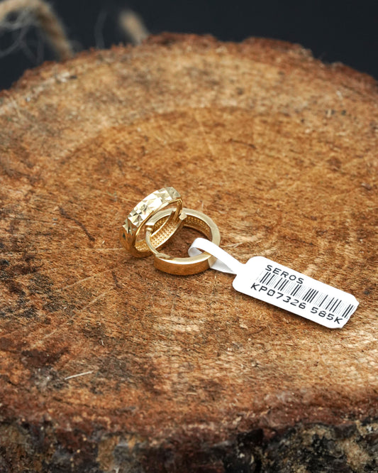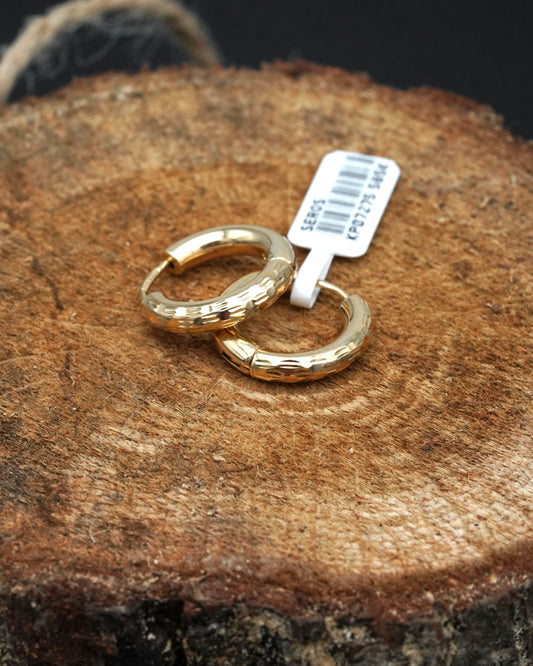 14 Ayar Altın Desenli Kesmeli Çift Halka Küpe 1.6Cm Gizli Kilitli