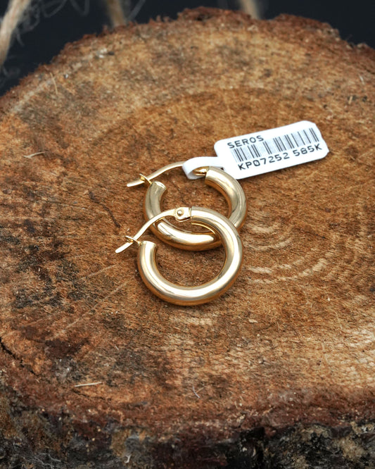 14 Ayar Altın Düz Işıltılı Çift Halka Küpe 1.2 Cm Gizli Kilitli