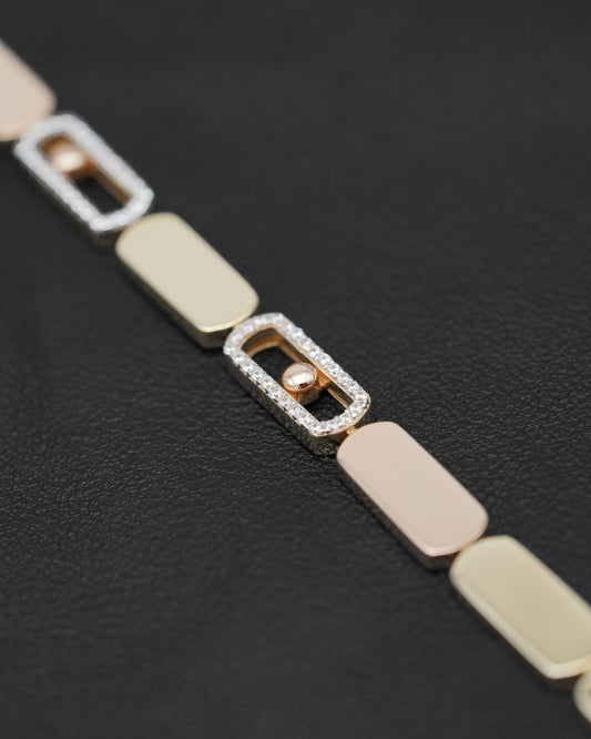 14 Ayar Altın Dikdörtgen Plakalı Hareketli Taşlı Bileklik