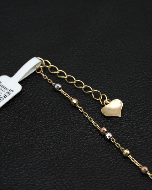 14 Ayar Altın İnce Dorika ve Kalpli Toplu Bileklik